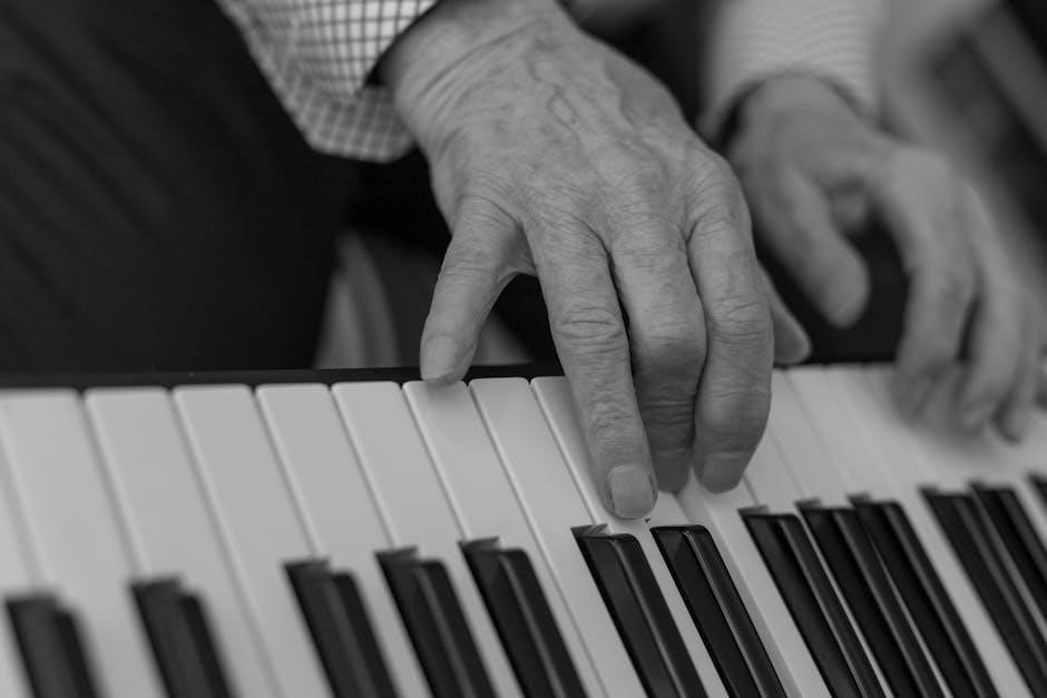 Workshops and classes are excellent resources for mastering piano chords, offering structured learning environments. Many programs focus on chord theory, practical exercises, and application in various musical styles. Group classes provide opportunities for interactive learning, while private lessons offer tailored instruction. Workshops often include hands-on practice, allowing students to improve technique and confidence. These sessions are led by experienced instructors who guide learners through complex chord progressions. Whether for beginners or advanced players, workshops and classes are invaluable for refining skills and deepening understanding of piano chords. They also foster a supportive community where musicians can grow and share their passion for music.